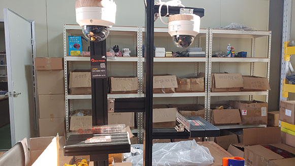 쇼핑몰 판매를 위한 대형 물류창고에 퀵파인더 무제한 솔루션을 적용하여 카메라 2대를 설치했습니다.